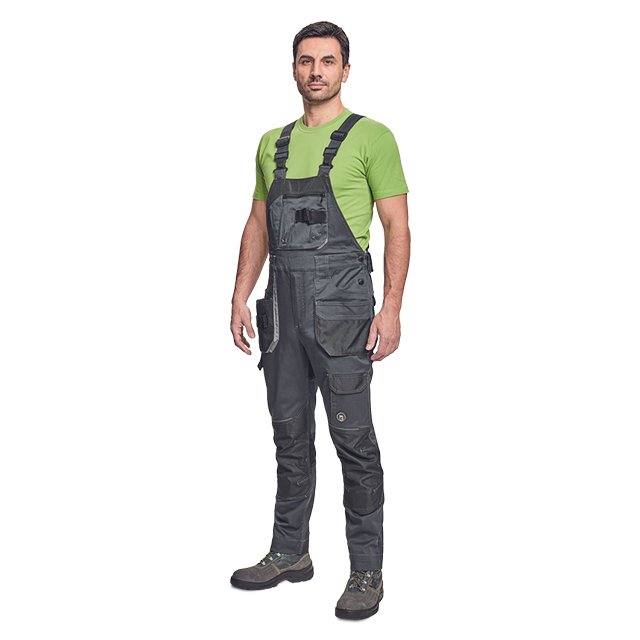 Men’s working bib pants made from innovative elastic TRIFIBETEX® fabric designed to provide flexibility, durability, and long-lasting comfort during demanding work activities. The elastic waistband enhances mobility, while triple stitching at the legs and crotch improves overall strength and resistance to wear.